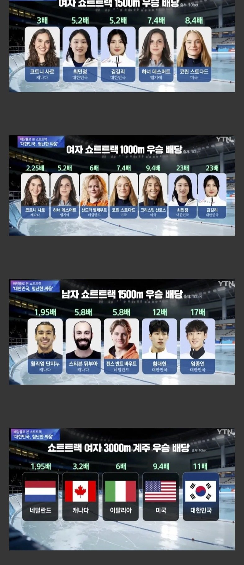 충격적인 대한민국 쇼트트랙 금메달 배당
