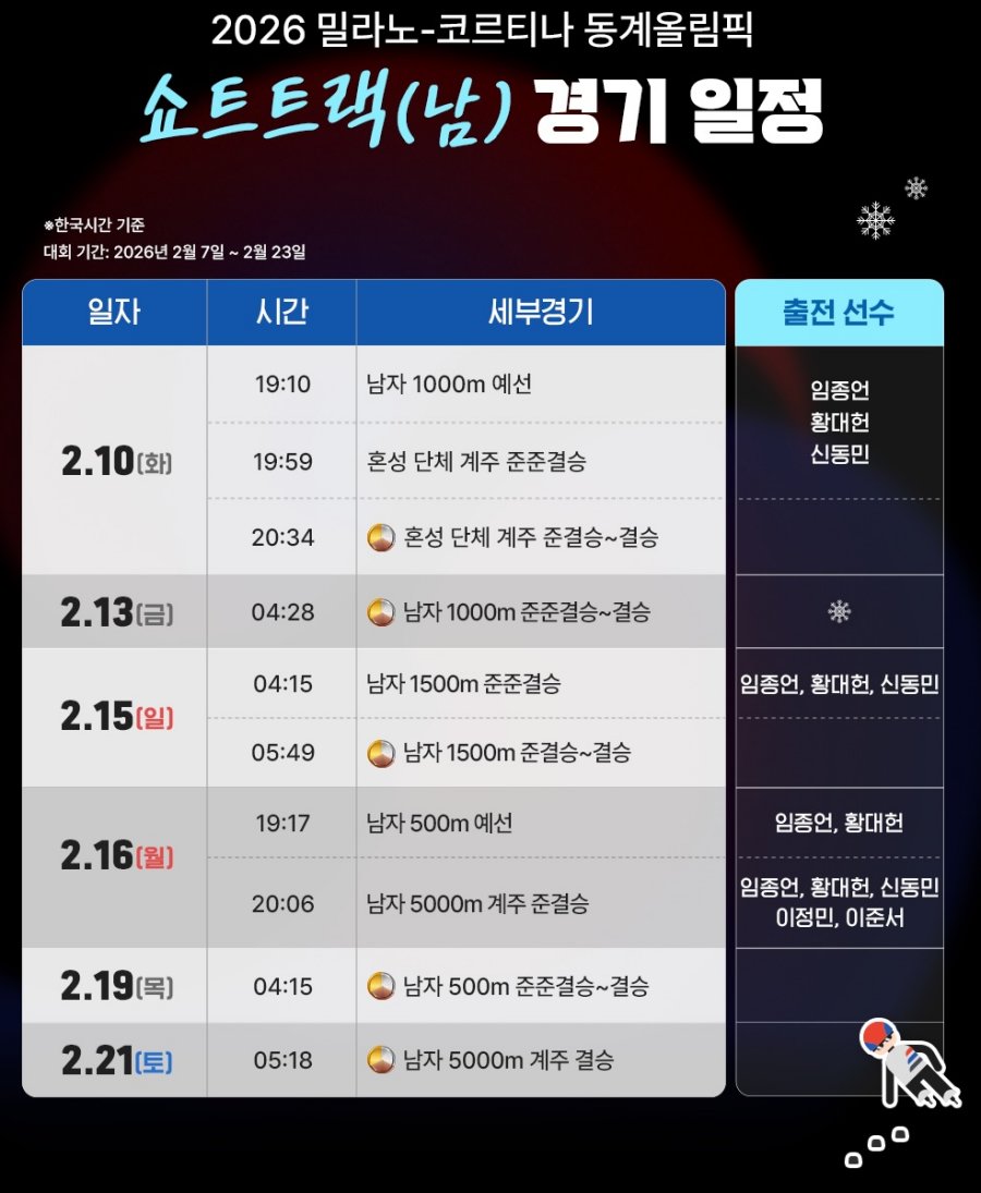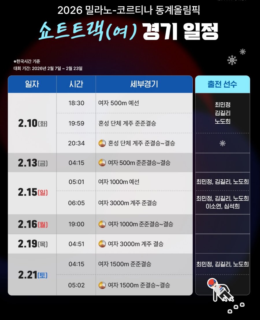 오늘부터 본격 시작하는 올림픽 쇼트트랙 경기 일정