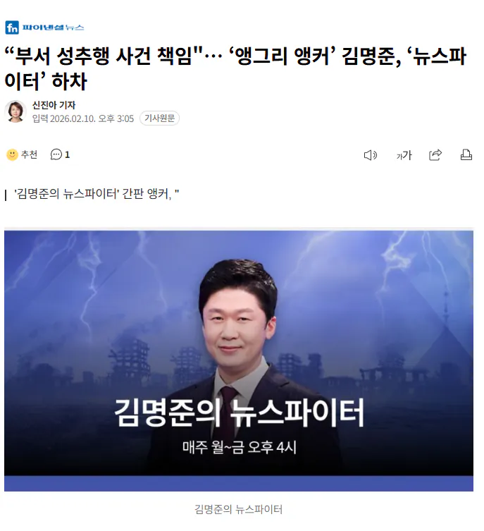 김명준, ‘뉴스파이터’ 하차, “부서 성추행 사건 책임