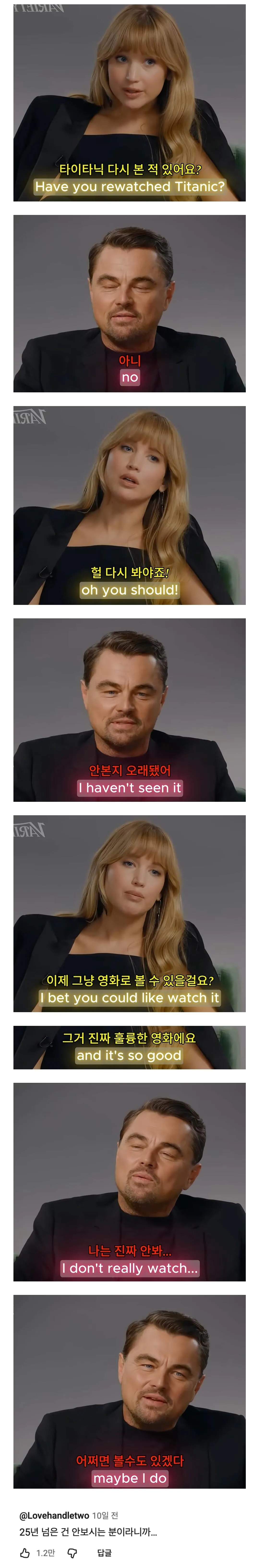 타이타닉 다시 본 적 있냐는 질문 받은 디카프리오