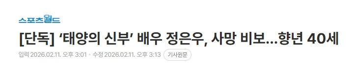 ‘태양의 신부’ 배우 정은우 사망 비보.. 향년 40세