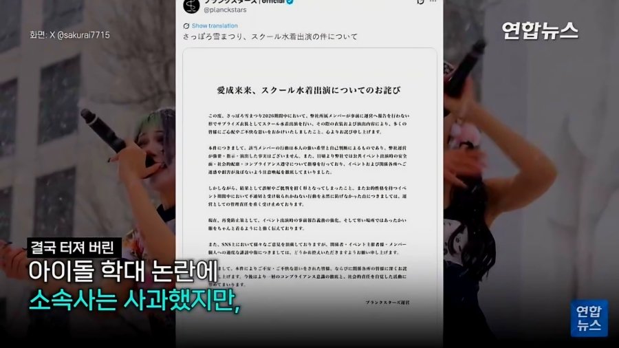 체감 온도 영하 10도... 일본 걸그룹 학대 논란