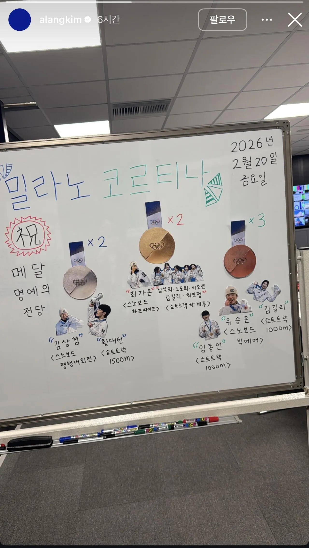 쇼트트랙 선수였던 김아랑의 SNS 스토리