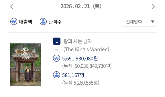 영화 "왕과 사는 남자" 관객 수 근황