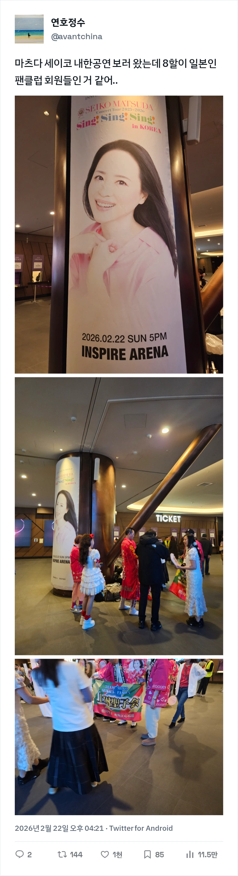 마츠다 세이코 내한 공연 보러 왔는데 8할이 일본인