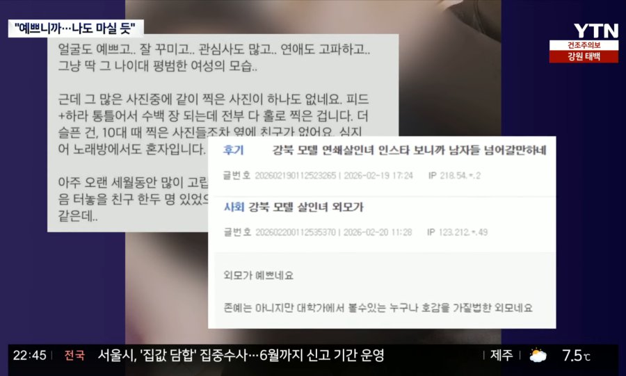 - 02.24 이쁘다고 난리난 강북 모텔 살인녀 인기 근황