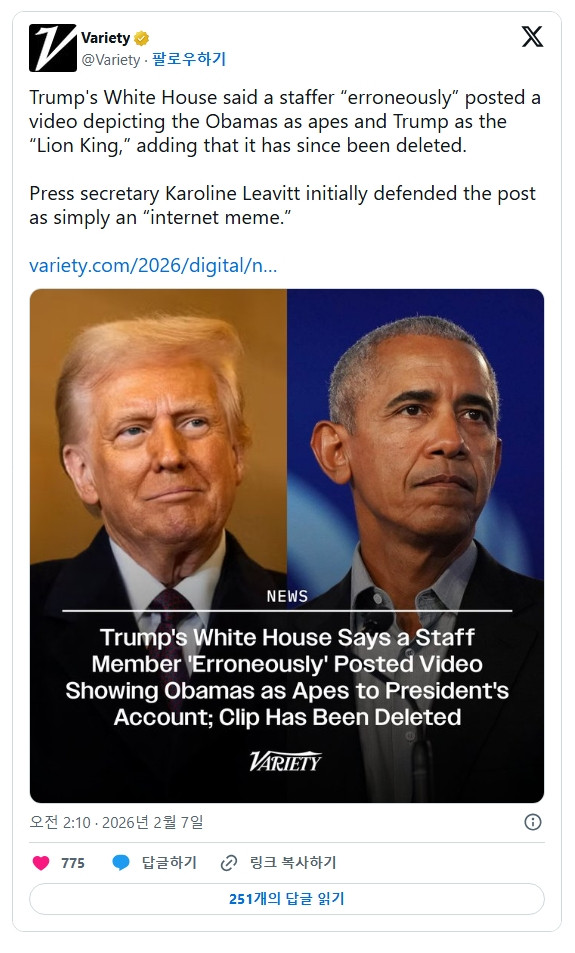 - 02.08 트럼프가 오바마 원숭이 합성 ai 이미지 올린 이유