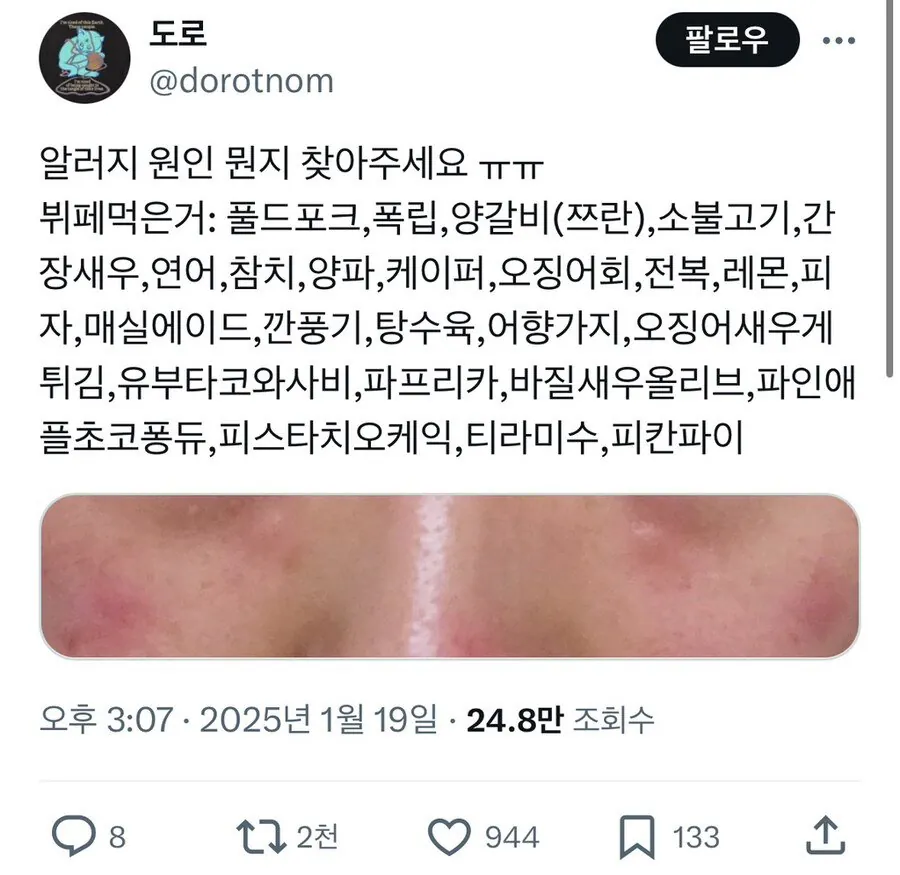 하필 뷔페 갔다와서 알러지 올라온 사람