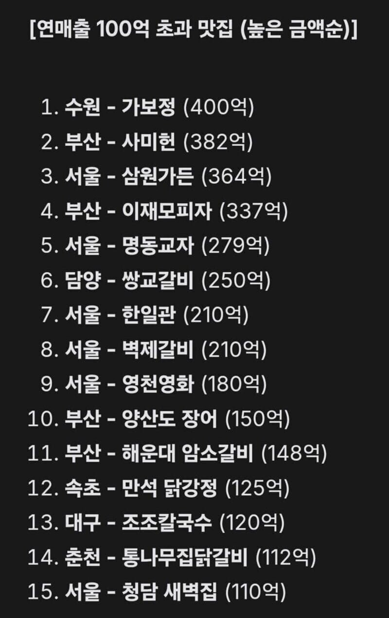 연매출 100억 초과 맛집 순위