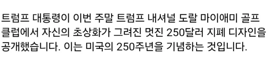 트럼프, 250달러 지폐 디자인 공개